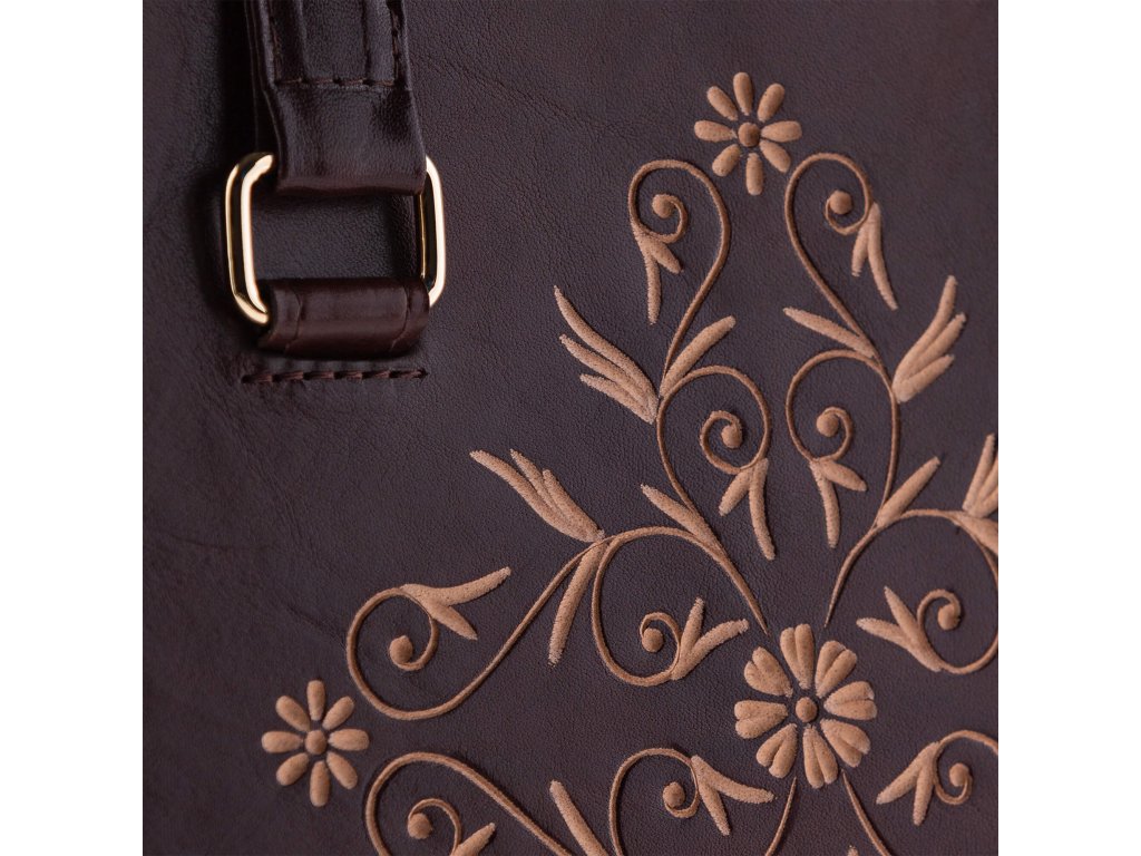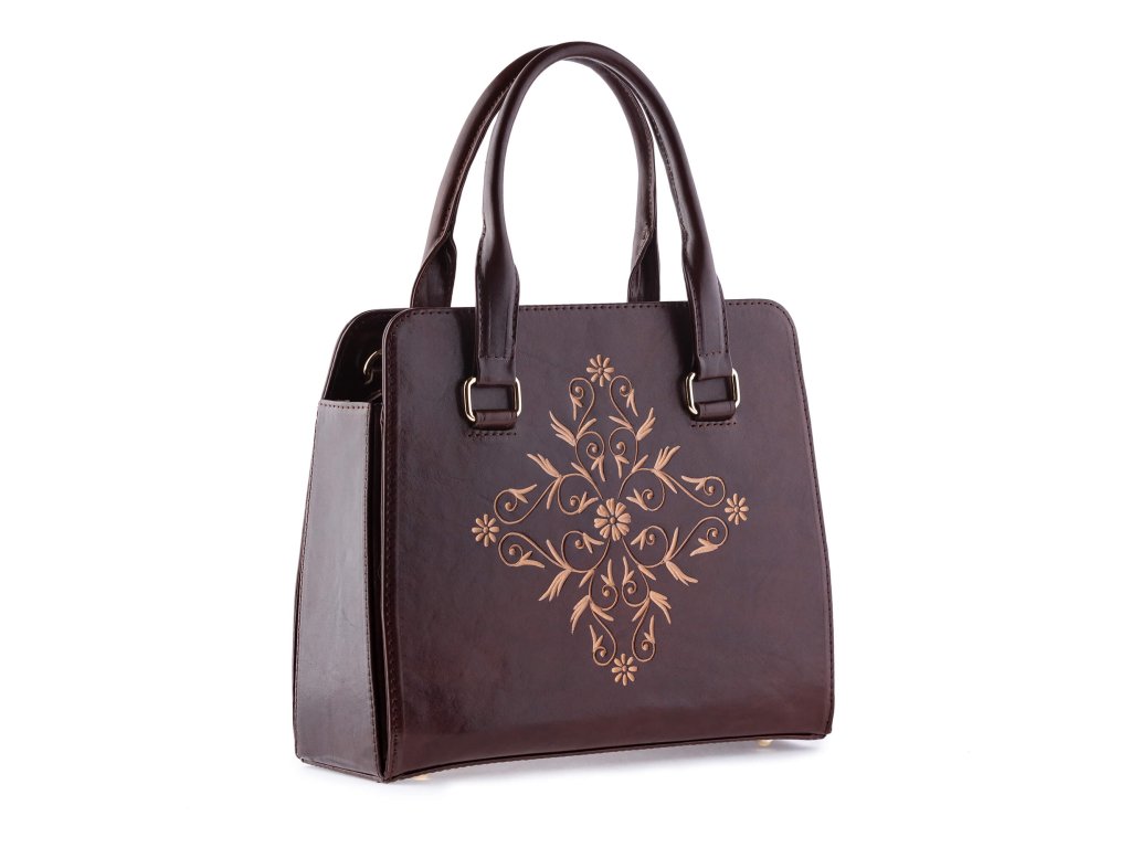 Elegantná kabelka, jemne zdobená, strednej veľkosti. Koža prémiovej kvality a ručné prevedenie zabezpečujú dlhú životnosť tohto originalného modelu. Ručne vyrezaný vzor jemne doladí každý outfit. Vo vnútri sa nachádzajú dve priehradky a jedno vrecko na zips. Skladom len 1 kus, po vypredaní len na objednávku s doručením do 30 pracovných dní.