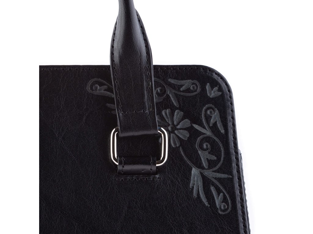 Elegantná kabelka, jemne zdobená, strednej veľkosti. Koža prémiovej kvality a ručné prevedenie zabezpečujú dlhú životnosť tohto originalného modelu. Ručne vyrezaný vzor jemne doladí každý outfit. Vo vnútri sa nachádzajú dve priehradky a jedno vrecko na zips. Skladom len 1 kus, po vypredaní len na objednávku s doručením do 30 pracovných dní.